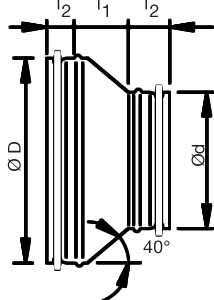 Galvanized steel pressed reducer, with rubber seal.