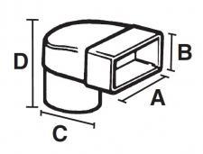 | Duct Type & Size | Dimensions | | Pressure (Pa) @ flow rate in l/s | | External (mm) | | | C Ø | B | A | D | | 60 | 120 | 180 | | Elbow bend 220 x 90 to Ø100 | 100 | 95 | 226 | 240 | | N/A | N/A | N/A | | Elbow bend 220 x 90 to Ø125 | 125 | 95 | 226 | 240 | | N/A | N/A | N/A | | Elbow bend 220 x 90 to Ø150 | 150 | 95 | 226 | 240 | | N/A | N/A | N/A |